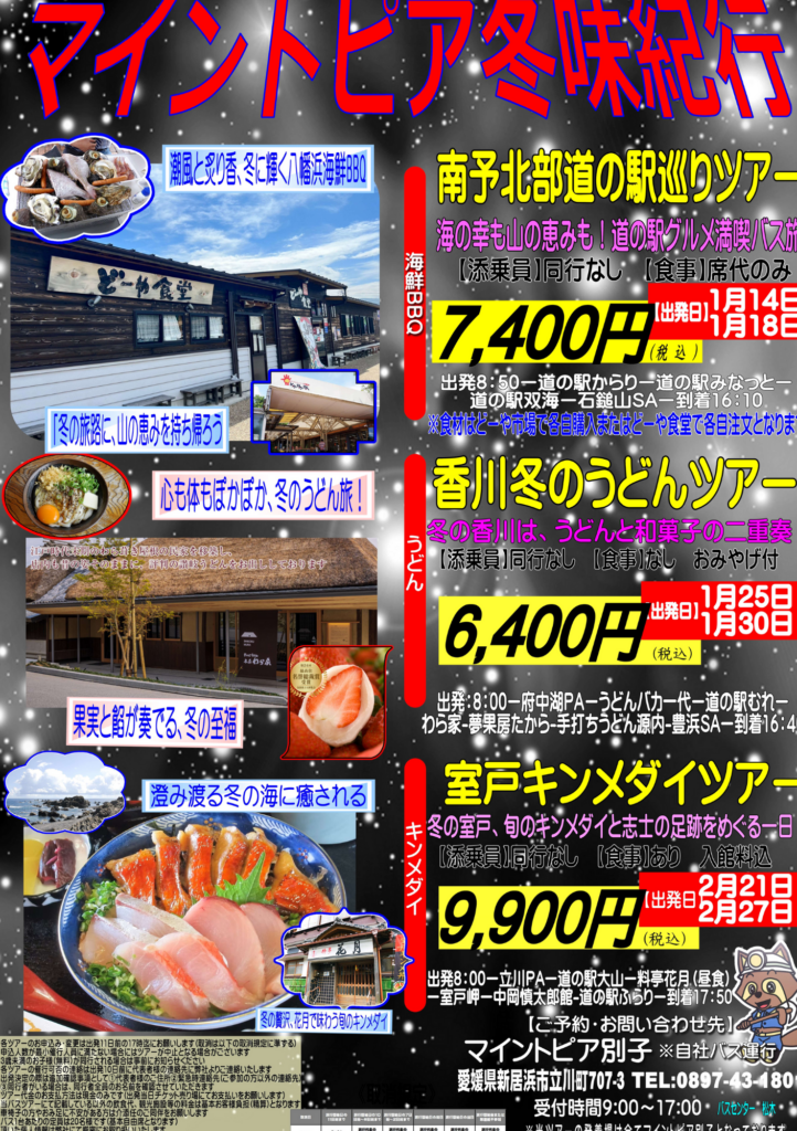 1月・2月 マイントピア別子(日帰りバスツアー)のご案内